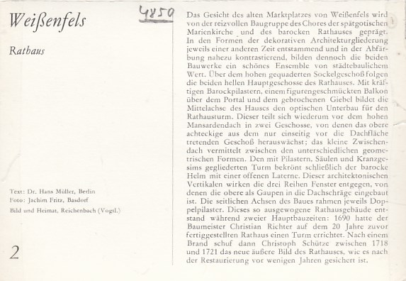 Weißenfels-Weissenfels Rückseite mit Geschichte
