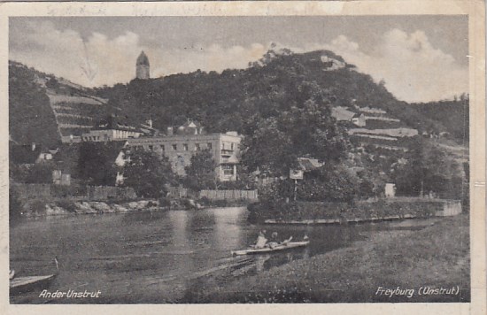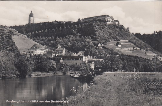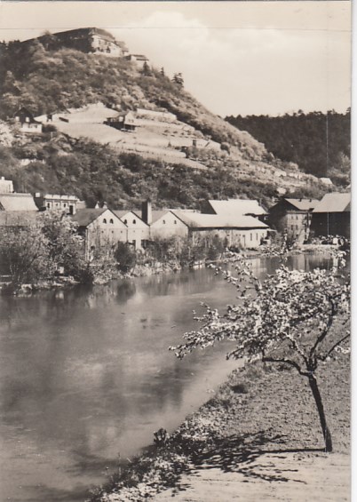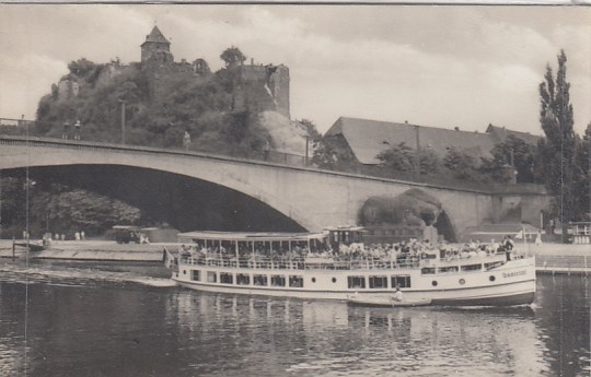 Bad Kösen in Sachsen-Anhalt mit Eisenbahn auf der Brücke 1965