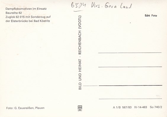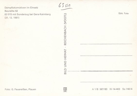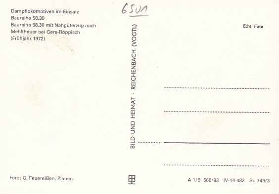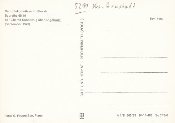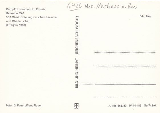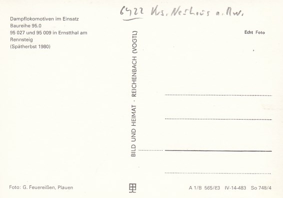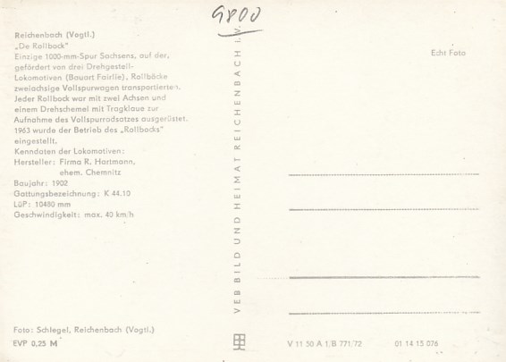 Eisenbahn Dampflokomotive Reichenbach 1972