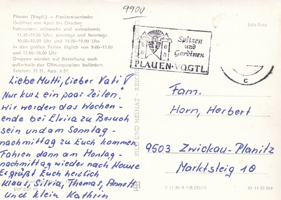 Plauen Vogtland Pionierpark Kleinbahn Pioniereisenbahn Bahnhof 1976