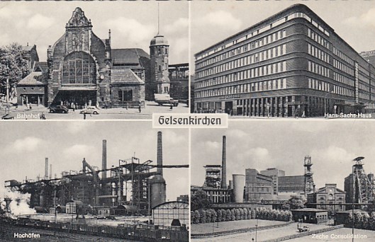 Gelsenkirchen mit Bahnhof und Bergbau Zeche 1964