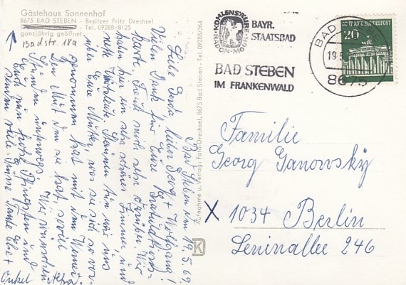 Gästehaus Sonnenhof Bad Steben im Frankenwald 1969