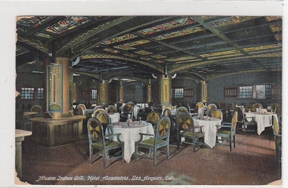 Los Angeles California USA old postcard Mission Indian Grill ca 1910