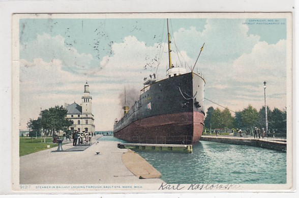 Towing in Charlevoix Michigan USA old postcard Schiffe 1906
