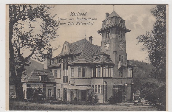 Karlsbad Tschechien CSSR Bahnhof der Drahtseilbahn Cafe Helenenhof 1909