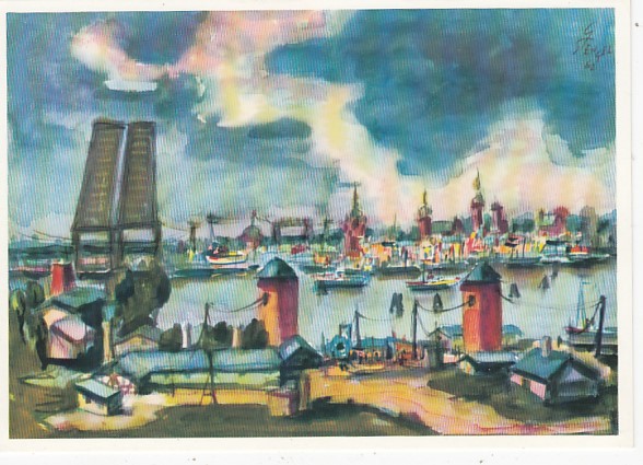 alte Ansichtskarten Postkarten Bilder nach Maler August Macke Hafen Duisburg
