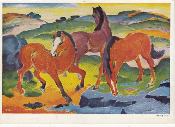 alte Ansichtskarten Postkarten Bilder nach Maler Franz Marc Rote Pferde
