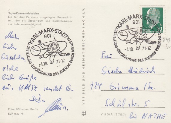 alte Bilder Thema Raumfahrt Kosmonauten Russland Sojus Sonderstmepel Chemnitz