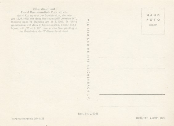 alte Bilder Thema Raumfahrt Kosmonauten Russland Pawel Romanowitsch Popowitsch