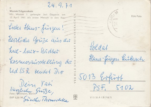 alte Bilder Thema Raumfahrt Kosmonauten Sonderstempel Garding Th.Mommsen