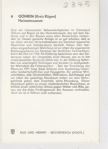 Ostseebad Göhren auf Rügen Museum Rückseite mit Geschichte
