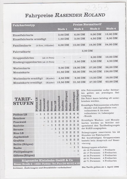 Kleinbahn Putbus-Göhren auf Rügen Fahrplan
