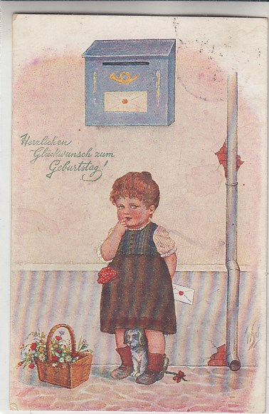 Glückwunsch AK Ansichtskarte zum Geburtstag Briefkasten 1921