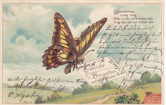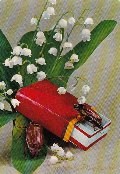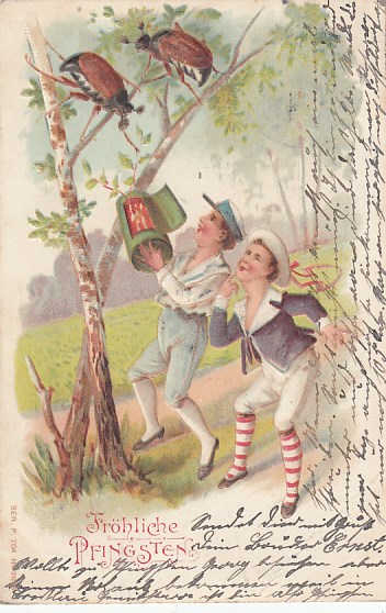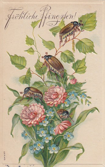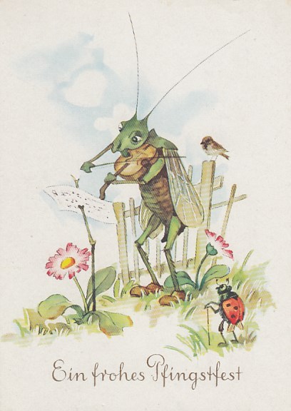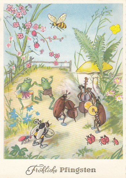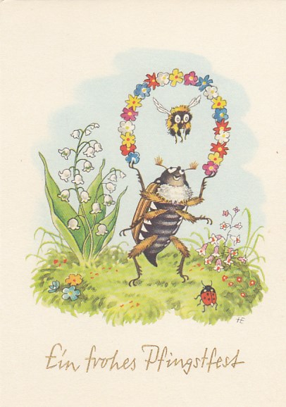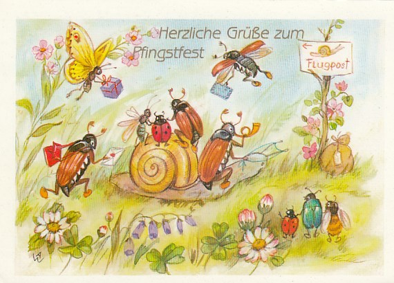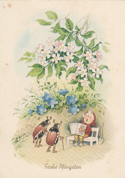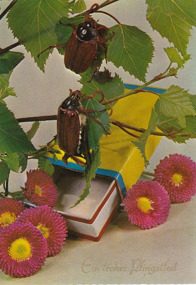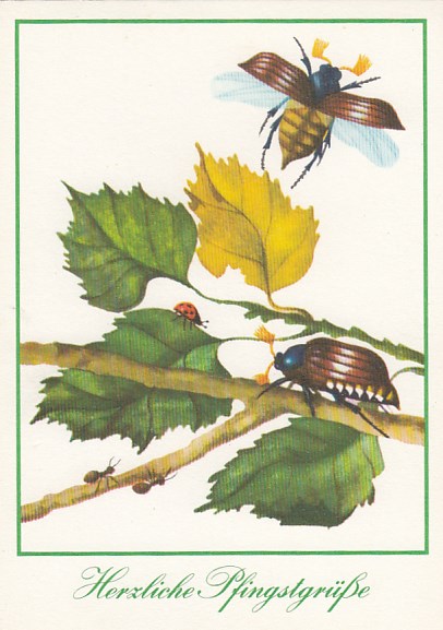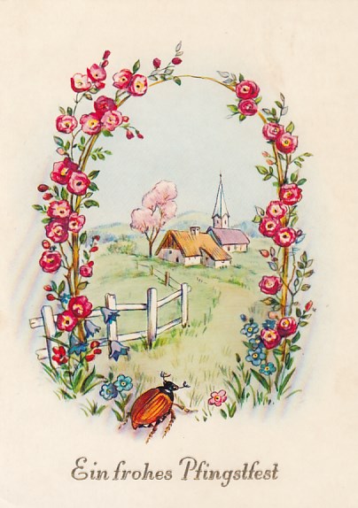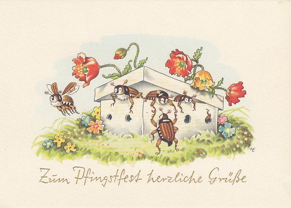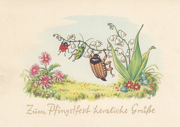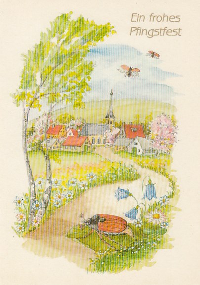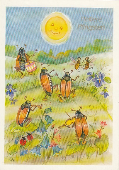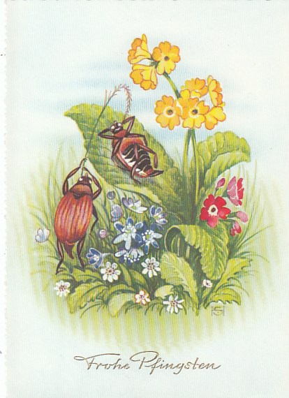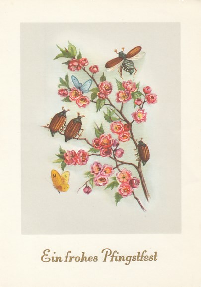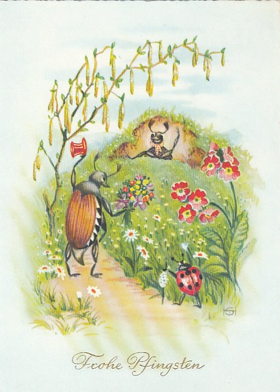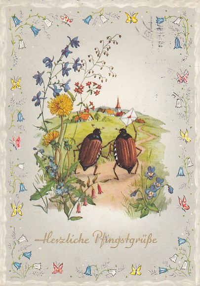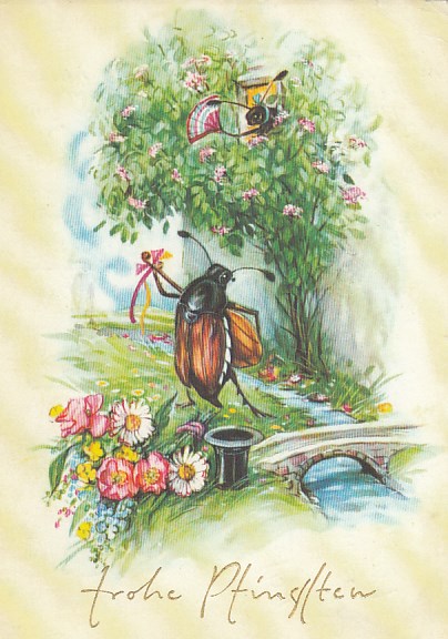 Glückwunsch AK Fröhliche Pfingsten Ansichtskarte Maikäfer 1960