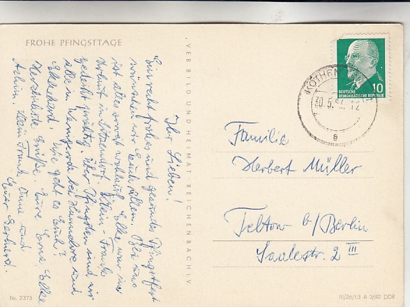 Glückwunsch AK Fröhliche Pfingsten Ansichtskarte 1957