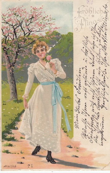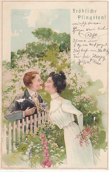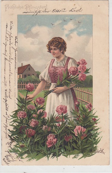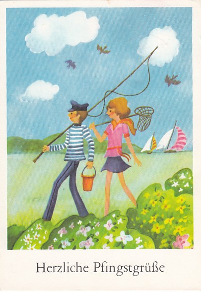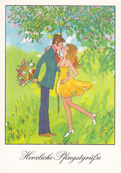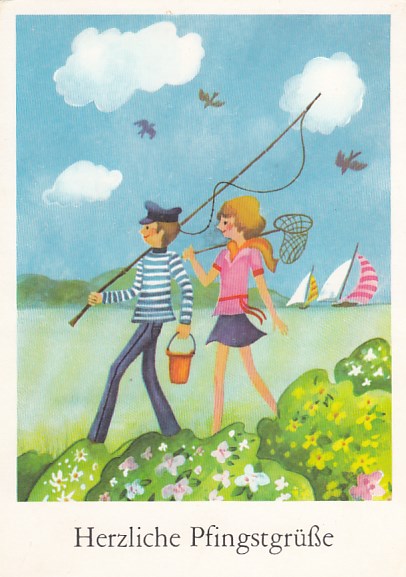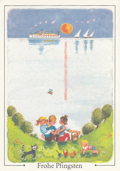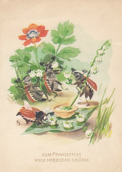 Glückwunsch AK Fröhliche Pfingsten Ansichtskarte Künstlerkarte 1960