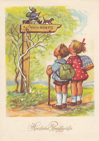Glückwunsch AK Fröhliche Pfingsten Ansichtskarte Künstlerkarte I.Schmidt ca 1955