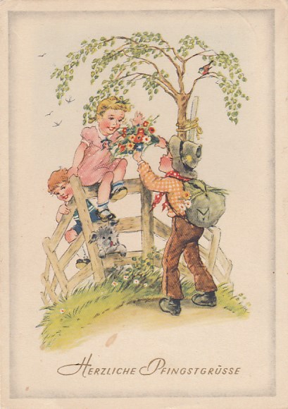 Glückwunsch AK Fröhliche Pfingsten Ansichtskarte 1955