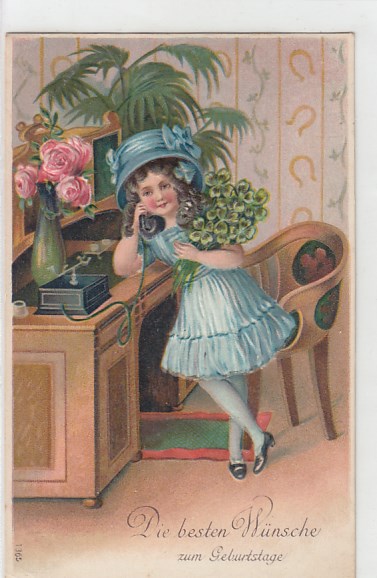 Glückwunsch AK Ansichtskarte zum Geburtstag Prägekarte Telefon 1912