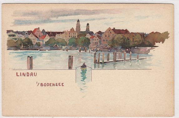 Lindau am Bodensee Litho Künstlerkarte F.Voellmy ca 1900