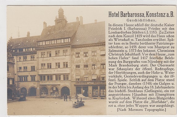 Konstanz am Bodensee Hotel Barbarossa Foto Karte mit Geschichte ca 1910
