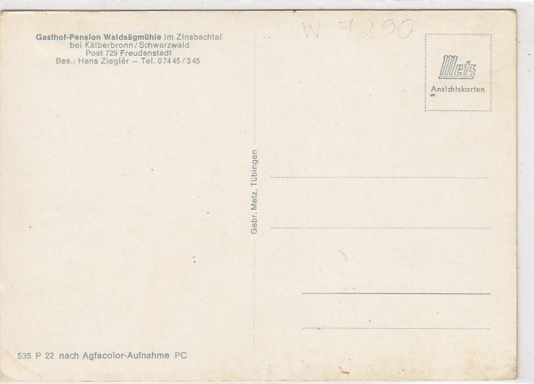 Gasthof Waldsägmühle Zinsbachtal bei Kälberbronn Freudenstadt im Schwarzwald ca 1970