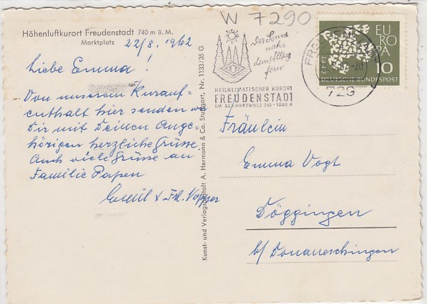 Freudenstadt im Schwarzwald Marktplatz 1962
