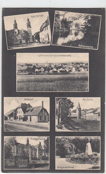 Dierdorf Westerwald kleine Bilder AK mit Bahnhof 1909