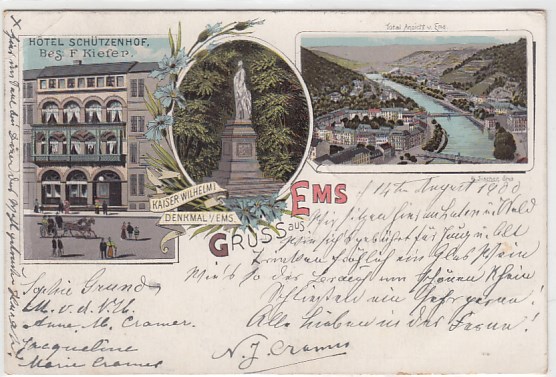 Bad Ems an der Lahn Hotel Schützenhof Litho Ansichtskarte von 1900