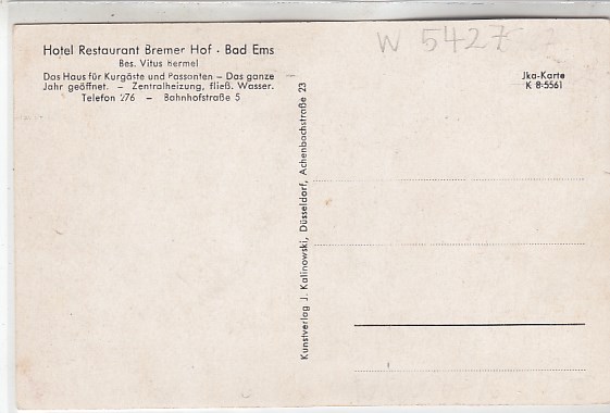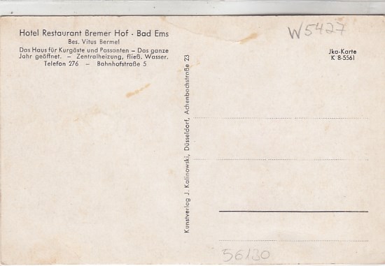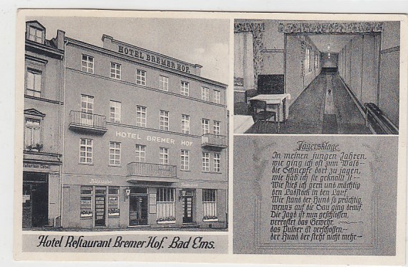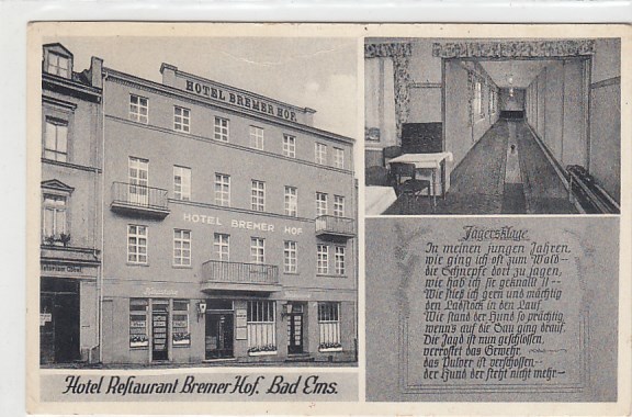 Bad Ems an der Lahn Restaurant Bremer Hof Kegelbahn ca 1935