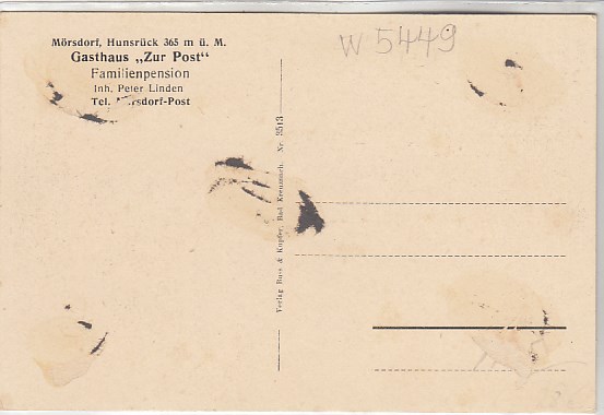 Mörsdorf bei Kastellaun Hunsrück Gasthaus Zur Post ca 1940