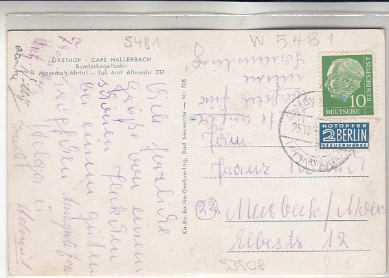 Hardert Westerwald bei Bonefeld Landpoststempel 1955