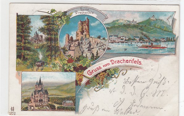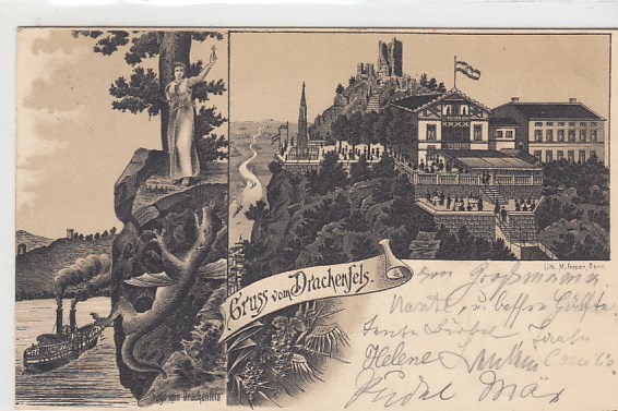 Königswinter am Rhein Drachenfels Litho Ansichtskarte von 1898