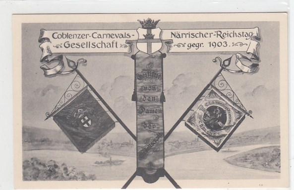 Koblenz am Rhein Karneval Närrischer-Reichstag Fahnen Anlaß AK 1903