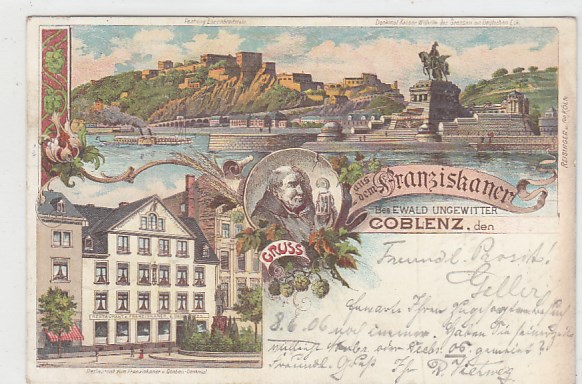 Koblenz am Rhein Franziskaner Litho Ansichtskarte von 1906