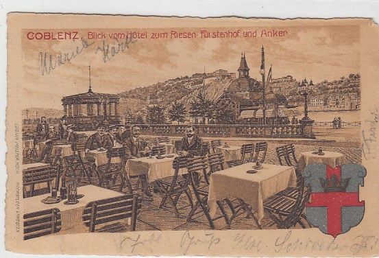 Koblenz am Rhein Riesen-Fürstenhof und Anker Wappen AK ca 1910