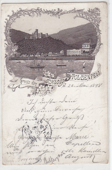 Koblenz am Rhein Schloss Stolzenfels Litho Ansichtskarte von 1898