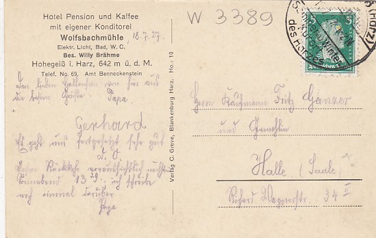 Wolfsbachmühle bei Braunlage Harz Hohegeiss Hohegeiß 1927