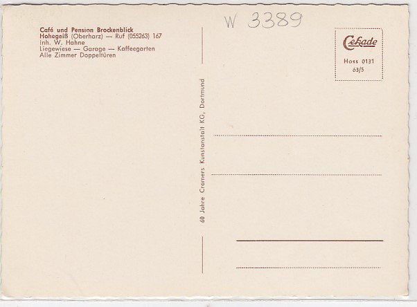 Hohegeiss Hohegeiß bei Braunlage Harz Cafe Brockenblick 1963