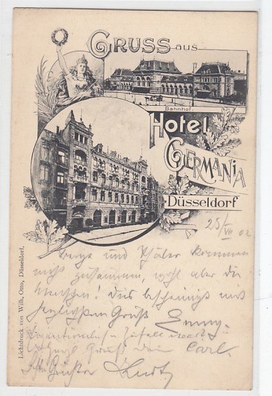 Düsseldorf Hotel Germania und Bahnhof 1902