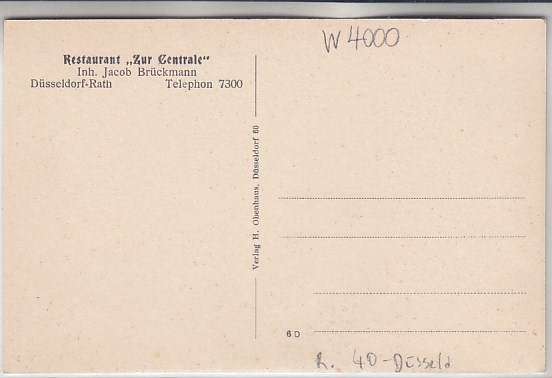 Düsseldorf-Rath Restaurant Zur Centrale ca 1920