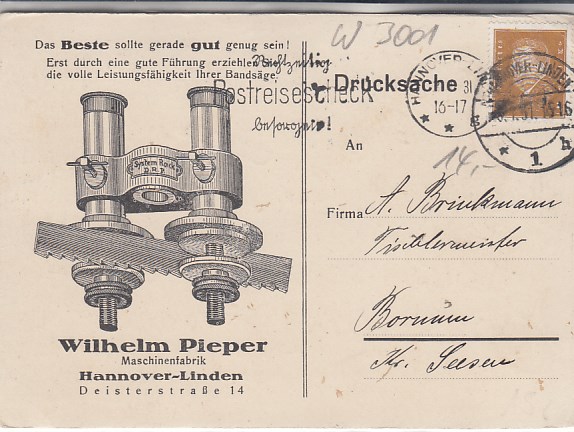 Hannover Stadtteil Linden Werbung Reklame Maschinenfabrik Wilhelm Pieper 1931