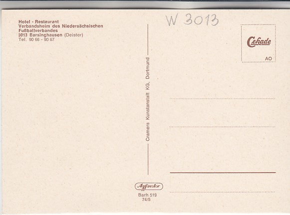 Barsinghausen am Deister Hotel Niedersächschen Fussballverbandes 1974
