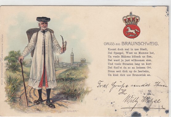 Braunschweig Bortfelder Bauer mit Pfeife Rauchen Prägekarte 1901