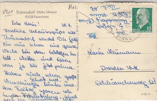 Gemeinde Gohrisch OT Papstdorf in Sachsen Pension Immenheim 1960
