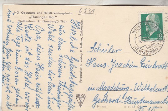 Thalbürgel Bürgel bei Eisenberg in Thüringen Gaststätte Foto Karte ca 1960