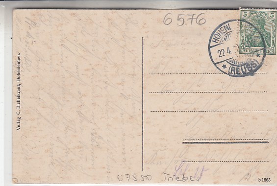 Ziegenmühle bei Papiermühle Stadtroda Stempel Hermsdorf 1913