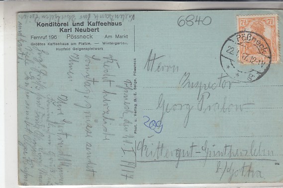 Pößneck in Thüringen Kaffeehaus Karl Neubert 1917