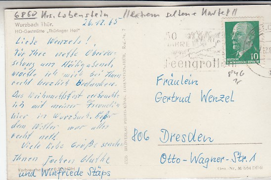 Wurzbach in Thüringen Gaststätte Thüringer Hof 1964