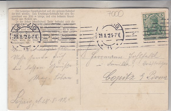 Leipzig Bahnhof 1913 Sonderstempel Baufach-Ausstellung
